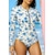 Damen Badeanzug Tankini Zweiteilig Shorts Bademode Reißverschluss Bauchkontrolle Hohe Taille Schlank Urlaub Strandbekleidung Blumen Rundhals Ärmellos Langarm Badeanzüge