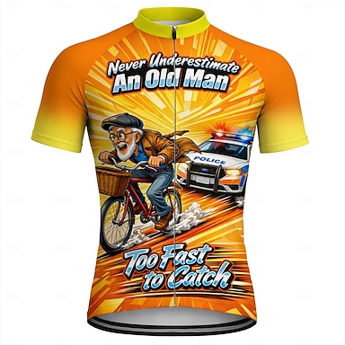 Herren Radtrikot Downhill-Trikot Lustig Unterschätze niemals einen alten Mann mit einem Fahrrad Kurzarm Fahhrad Hemd Trikot T-Shirt mit 3 Gesäßtaschen Mountainbike MTB Straßenradsport UV-beständig