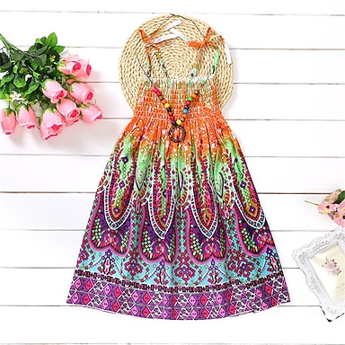 Mädchen' 3D Geometrisch Kleid Ärmellos Sommer Urlaub Täglich Festtage Schön Süß kinderkleidung 4-12 Jahre Casual kleid Tank-Top Kleid Maxi Regular Fit
