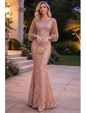 Ärmelloses Abendkleid Elegante Glanz Glanz Petite Juwelenkragen Bodenlang Pailletten 3/4-Länge Ärmel mit einfarbigem Kleid um zu beeindrucken