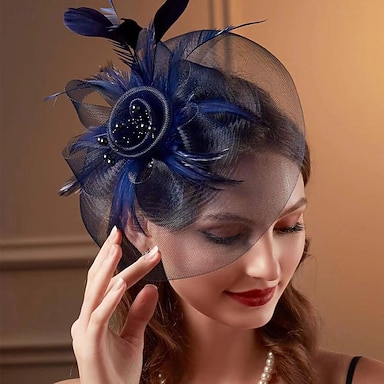 Fascinator Stoff Federn Fedora-Hut Hochzeit Teegesellschaft Pferderennen Cocktail Elegant Vintage Dame Mit Feder Kopfschmuck Kopfbedeckung
