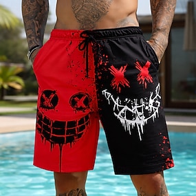 Herren Schädel Straßenkultur Gothic Badehosen Badeanzüge Badeshorts Boardshorts Mittlere Taille Dunkler Gothic-Stil Outdoor Streetwear Alltagskleidung Seitentaschen Netzfutter Elastischer Kordelzug