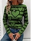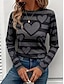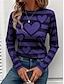 Damen T Shirt Druck Grafik Geometrisch Vintage Stilvoll Modern Langarm Rundhalsausschnitt Normale Oberteile Täglich Wochenende Blau Wein Purpur Grün Grau Herbst Winter