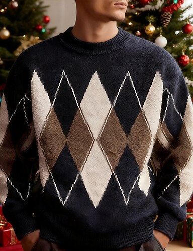 Herren Weihnachtspullover Pullover Strickpullover Gerippt Stricken Normale Oberteile Gestrickt Argyle Rundhalsausschnitt Mode Basic Urlaub Alltagskleidung Bekleidung Herbst Winter Schwarz Rote M L XL