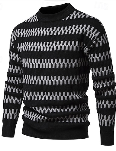 Herren Pullover Strickpullover Gerippt Stricken Normale Oberteile Gestrickt Gestreift Rundhalsausschnitt Mode Basic Urlaub Alltagskleidung Bekleidung Herbst Winter Schwarz Weiß S M L