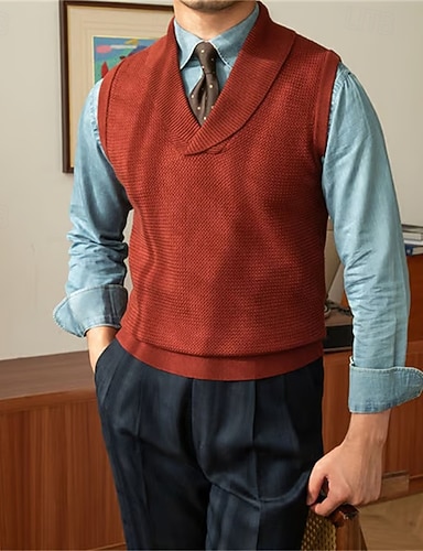 Herren Pullunder Kleid Pullover Pullover Weste Strickpullover Gerippt Stricken Normale Oberteile Gestrickt V Ausschnitt Alltagskleidung Date Bekleidung Herbst Winter Wein Dunkelmarine S M L