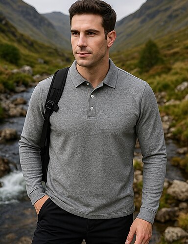 Herren Wanderspitze POLO Shirt Baumwollhemd Langarm Umlegekragen Oberteil Außen Thermowarm Winter Herbst Polyester Schwarz Weiß Dunkelblau Fitnessstudio Training Reisen