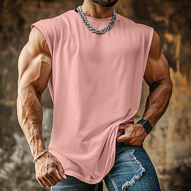 Herren Tank Top Weste Unterhemd Ärmelloses Shirt Ärmellos Rundhalsausschnitt Sommer Einfach Mode Designer Sportlich Klassisch Rein Urlaub Straße Lässig Schwarz Weiß Rosa Top T-Shirt für Herren