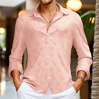 Herren Hemd Satinhemd Sommerhemd Strandbekleidung Schwarz Weiß Rosa Leicht Blau Langarm Blatt Kargen Urlaub Casual Bekleidung Elegant Urlaub Modisch Komfortabel