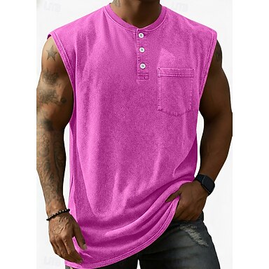 Herren Tank Top Henley Hemd Weste Baumwoll-T-Shirt Ärmellos Henley Sommer Einfach Mode Designer Basic Tasche Stückgefärbt Knöpfe Lässig Urlaub Straße Schwarz Hellgrün Rosa Top T-Shirt für Herren