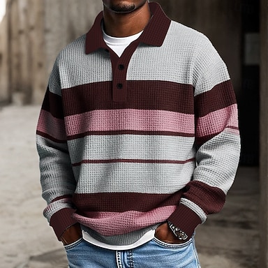 Herren Horizontale Streifen Polo Rugby-Poloshirt Textur Langarm Polo-Shirts Revers Sportbekleidung Lässig Schule Athleisure Alltagskleidung 3D-Druck Frühling Herbst Winter Blau Rosa Braun