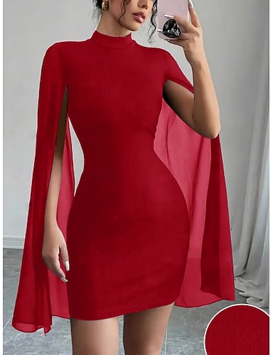 Damen Minikleid schwarzes kleid Freizeitkleid Elegant Mode Modern Outdoor Urlaub Ausgehen Schlank Einfach Langarm Rollkragen Blau Schwarz Rote Sommer Frühling