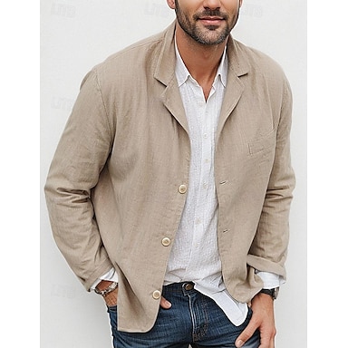 Herren Leichte Jacke Blazerjacke Leinenblazer Formell Büro Herbst Baumwolle und Leinen Einfarbig Bequem Einreihig Blazer Hellgrün Marineblau Braun Kaki