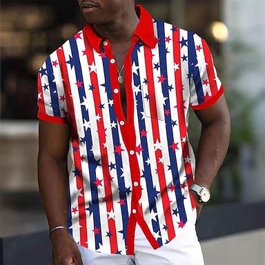 Tag der Unabhängigkeit Herren Amerikanische US-Flagge 250. Jahrestag des Unabhängigkeitstages der USA am 4. Juli Patriotisch Hemd Sommerhemd Knopfhemd Kurzarm Modisch lässig Ferien Sommer Frühling