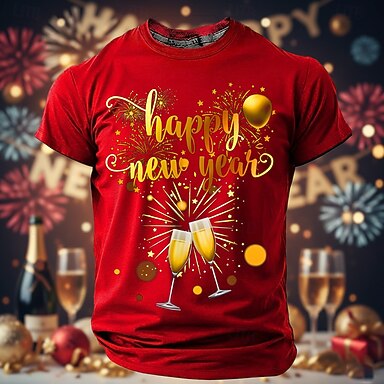 Neujahr Herren glückliches neues Jahr Feuerwerk 2026 T Shirt Kurzarm T-Shirt 3D-Druck Rundhalsausschnitt Hemd Übertrieben Designer Künstlerisch Club Party Straße Blau 1# Schwarz Rote Herbst Winter