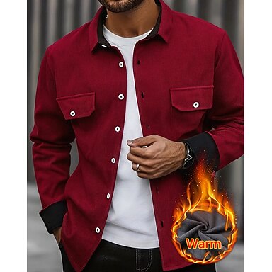 Herren Hemdjacke Cordjacke Freizeitjacke Jacke-Shirt Lässig Täglich Tasche Knöpfe Herbst Winter Farbblock Streetwear Täglich Umlegekragen Regulär Blau Dunkelgrau Rote Khaki Armeegrün Jacken