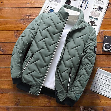 Herren puffer jacket Bomberjacke Steppjacke übergangsjacke Full Zip Casual Freizeitskleidung Standard Casual Modisch Windundurchlässig warm halten Herbst Winter Streifen und Plaid Schwarz Hellgrün