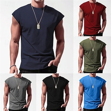 Herren Tank Top Weste Unterhemd Ärmelloses Shirt Ärmellos Rundhalsausschnitt Sommer Einfach Mode Designer Muskel Outdoor Ausgehen Fitnessstudio Schwarz Weiß Rote Top T-Shirt für Herren