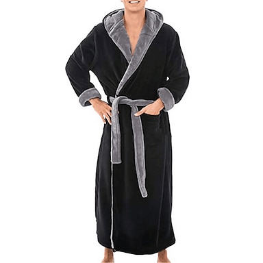Herren Schlafanzug Morgenmantel Bademantel Glatt Stilvoll Brautkleider schlicht Komfort Heim Täglich Bett Flanell Komfort Warm Kapuzenpullover Langarm Tasche Gürtel inbegriffen Herbst Winter Schwarz