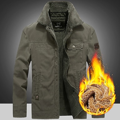 Herren Wintermantel Winterjacke Outdoor Strasse warm Atmungsaktiv Pelzkragen Tasche Herbst Winter Feste Farbe Sport Brautkleider schlicht Umlegekragen Lang Baumwolle Regular Fit Armeegrün Marineblau