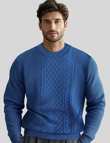 Herren Pullover Strickpullover Gerippt Zopfmuster Stricken Normale Oberteile Gestrickt Einfach Rundhalsausschnitt Modern Moderne zeitgenössische Lässig Alltagskleidung Bekleidung Herbst Winter