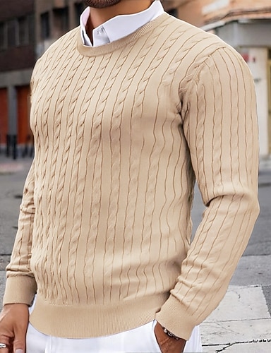 Herren Pullover Kurzer Pullover Strickpullover Gerippt Zopfmusterstrick Stricken Normale Oberteile Gestrickt Einfarbig Rundhalsausschnitt Mode Lässig Urlaub Alltagskleidung Bekleidung Herbst Winter