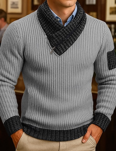 Herren Pullover Strickpullover Gerippt Stricken Standard Strick Farbblock Viertel Postleitzahl Modisch Basic Freizeitskleidung Verabredung Bekleidung Herbst Winter Gelb Grau S M L