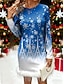 Weihnachts Frauen Weihnachtsbaum Schneeflocken Mini Kleid Etuikleid Urlaub Party Lässig Urlaub Zuhause Regelmäßige Passform Grafik Langarm Rundhals Crewneck Blau Frühling Herbst Winter