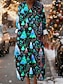 Weihnachten Damen Midi Kleid A-Linie Kleid Fit And Flare Kleid Party Lässig Alltag Feiertag Reguläre Passform Grafik Kurzarm V-Ausschnitt Schwarz Blau Grün Herbst Winter