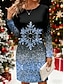 Weihnachts Frauen Schneeflocken Mini Kleid Shift Kleid Sportkleid Party Lässig Schule Outdoor Lockerer Passform Grafik Langarm Rundhals Schwarz Rot Grün Frühling Herbst Winter
