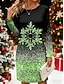 Weihnachten Damen Minikleid Shiftkleid Urlaub Lässig Party Täglich Normale Passform Grafik Schneeflocke Langarm Rundhalsausschnitt Rote Gold Grün Herbst Winter
