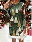 Weihnachten Damen Knielanges Kleid Pulloverkleid Shiftkleid Urlaub Lässig Geburtstag Date Normale Passform Grafik Karomuster Weihnachtsbaum Langarm Rundhalsausschnitt Rote Frühling Herbst Winter