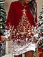 Weihnachten Damen Minikleid Pulloverkleid Shiftkleid Urlaub Lässig Geburtstag Date Normale Passform Grafik Weihnachtsbaum Schneeflocke Langarm Rundhalsausschnitt Rote Frühling Herbst Winter