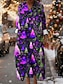 Weihnachten Damen Rentier Midi Kleid Etuikleid A-Linie Kleid Elegant Boho Süß Zuhause Party Neujahr Regulierter Fit Grafik Claus Langarm Rundhals Farbenfroh Schwarz Blau Lila Frühling