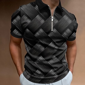 Herren Geometrisch Linie Poloshirts mit Reißverschluss Kurzarm Polo-Shirts Hemden mit Kragen Business-Casual Geschäft Athleisure Büro-Outfit Alltagskleidung 3D-Druck Sommer Schwarz