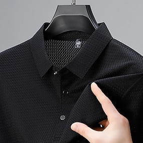 Herren Textur Waffelstrick-Poloshirt Lässig Geschäft Klassisch Kurzarm Mode Modern Einfarbig Texture Schnelltrocknend Knöpfe Sommer Frühling Normale Passform Schwarz Weiß Marineblau Armeegrün Leicht
