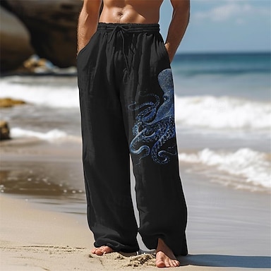 Herren Oktopus Freizeithose Hosen Hose Baggy-Hosen Mittlere Taille Vintage Outdoor Streetwear Alltagskleidung Seitentaschen Elastisches Kordelzugdesign Schwarz Weiß Blau
