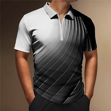 Herren Geometrisch Poloshirts mit Reißverschluss Golfshirt Kurzarm Polo-Shirts Hemden mit Kragen Business-Casual Urlaubskleidung Formelle Kleidung Festivalkleidung 3D-Druck
