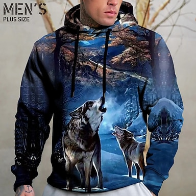 Herren Übergröße Pullover mit Kapuze Sweatshirt Groß und hoch Tier Mit Kapuze Tasche Langarm Frühling & Herbst Modisch Strassenmode Basic Komfortabel Freizeitskleidung Urlaub Oberteile