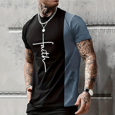 Herren Bibel Grafik Farbblock Buchstaben T-Shirt Christliche T-Shirts Kurzarm T-Shirt 3D-Druck Rundhals-Shirt Vintage Mode Designer Outdoor Alltagssport Blau Rot Grün Frühling Sommer Kleidung