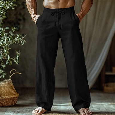 Herren Leinenhosen Hose Sommerhose Baggy-Hosen Strandhose Kordelzug Elastischer Bund Gerader Schnitt Einfach Komfort Atmungsaktiv Volle Länge Lässig Täglich Ferien Urlaub Mode Blau Schwarz