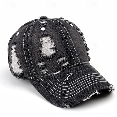 Herren Cap Basecap Sonnenhut Kappe Schwarz Dunkel Blau Baumwolle Zerrissen Modisch Brautkleider schlicht Strasse Täglich Glatt Einstellbar Sonnenschutz Atmungsaktiv