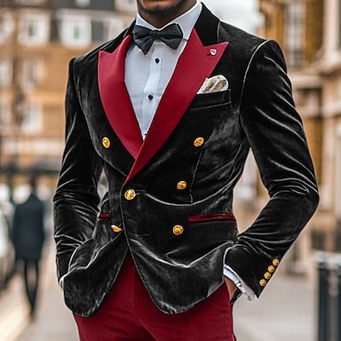 Herren Blazerjacke Smoking Verschlusskragen Vintage Party Samt Patchwork Einfarbig Blazer Schwarz Burgunderrot Dunkelblau Standard Passform Doppelreihig Sechs-Knöpfe