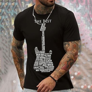 Männer Grafik T-Shirt "Die Besten" Gitarrenlegenden Ikonische Musiker Liste im Gitarrenform Design Musik Fan Tee