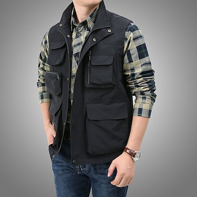 Herren Anglerweste Weste für Wanderer Ärmellos Oberbekleidung Reißverschluss oben Shirt Außen Multi-Pocket Atmungsaktiv Rasche Trocknung Schweißableitend Sommer Schwarz Kaki Marineblau Jagd Angeln