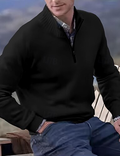 Herren Pullover Pullover mit Viertelreißverschluss Strickpullover Gerippt Stricken Normale Oberteile Gestrickt Einfach Stehkragen Mode Lässig Urlaub Alltagskleidung Bekleidung Herbst Winter Schwarz