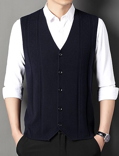 Herren Pullunder Kleid Pullover Wollpullover Gerippt Stricken Strick Streifen V Ausschnitt Moderne zeitgenössische Koreanisch Freizeitskleidung Ausgehen Bekleidung Ärmellos Frühling & Herbst Schwarz