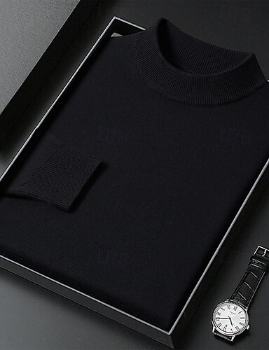 Herren Pullover Gerippt Stricken Normale Oberteile Gestrickt Schmale Passform Einfach Rollkragen Strickware Zeitgenössisch Lässig Alltagskleidung Bekleidung Ganzjahres Schwarz Weiß S M L