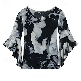 Latein-Tanz oben Print Rüsche Farbaufsatz Damen Leistung Ausbildung Halbe Ärmel Hoch Polyester