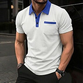 Herren Golfshirt Waffelstrick-Poloshirt Lässig Geschäft Klassisch Kurzarm Mode Modern Einfarbig Gestreift Tasche Farbblock Frühling & Sommer Sommer Frühling Normale Passform Schwarz Weiß Königliches